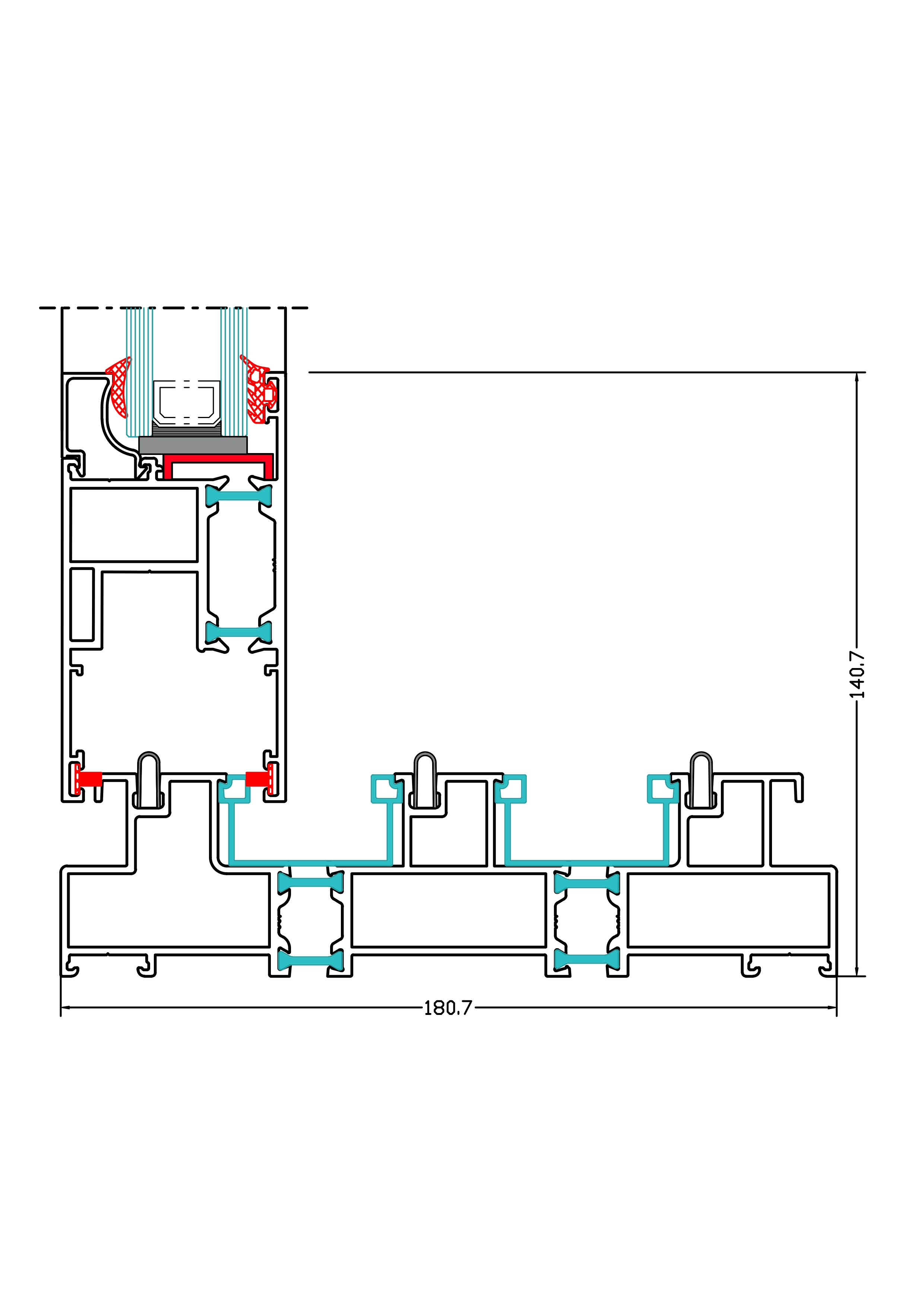پهنای قاب 180 میلیمترپهنای بازشو 52 میلیمترضخامت دیواره 1.6 - 1.8 - 2 میلیمترپهنای تیغه پلی آمید 15 میلیمترضخامت شیشه 20 - 24 - 28 میلیمترارتفاع قابل رویت 140.7 میلیمترانواع بازشوهای پنجره قابل اجرا