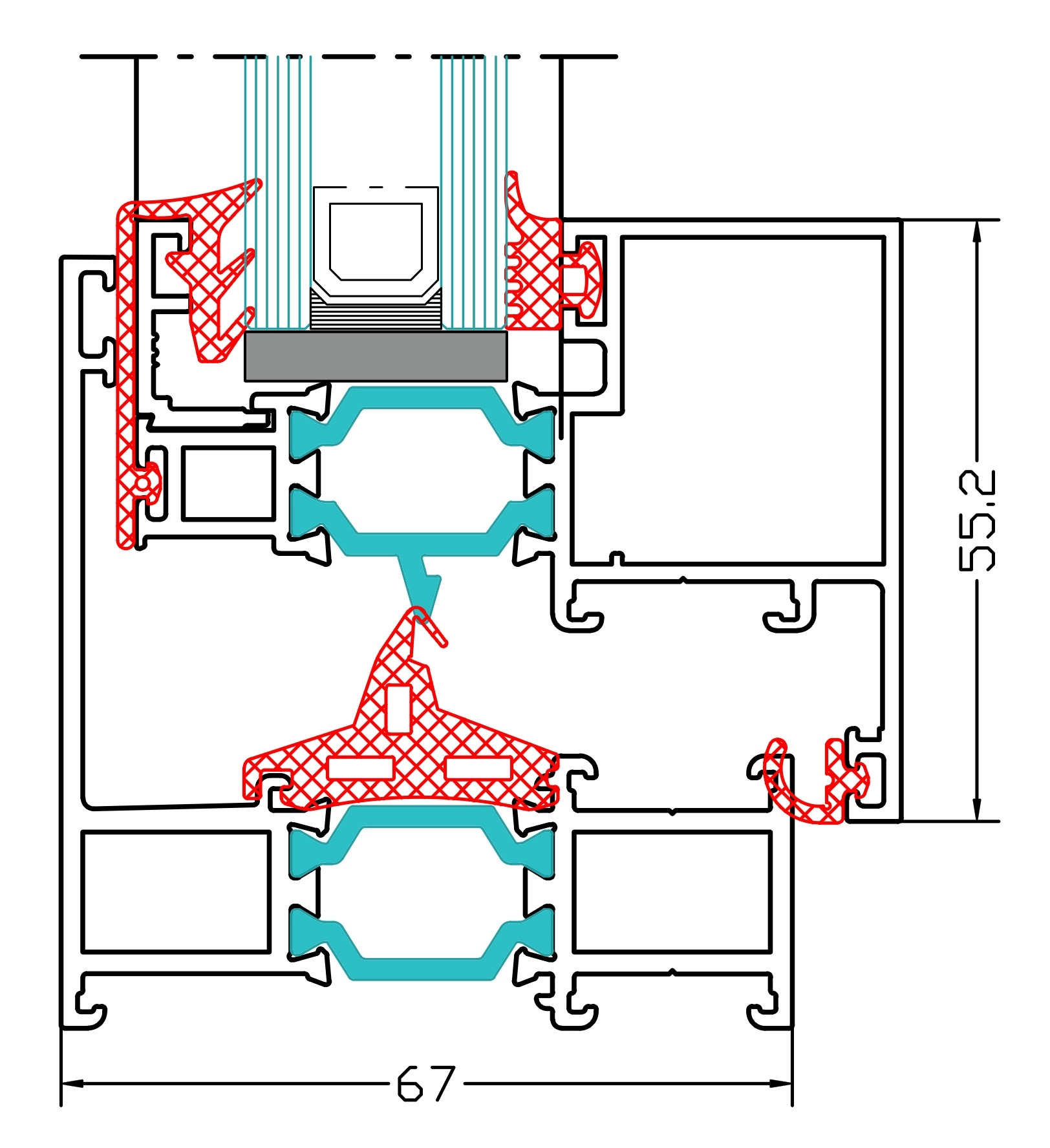 پهنای قاب 67 میلیمترپهنای بازشو 72 میلیمترضخامت دیواره 1.6 - 2 میلیمترپهنای تیغه پلی آمید 24 میلیمترضخامت شیشه 24 میلیمترارتفاع قابل رویت 74 میلیمترانواع بازشوهای پنجره قابل اجرا